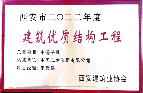 “建筑優(yōu)質結構工程”獎是西安市建筑行業(yè)工程質量管理方面的權威獎項。該獎項的獲得,是西安市建筑業(yè)協(xié)會對中國二冶建筑施工生產(chǎn)實力和質量管控專業(yè)技術能力的充分肯定,更是對中國二冶在西安市城市建設過程中的付出和為當?shù)亟?jīng)濟發(fā)展所作貢獻的認可。